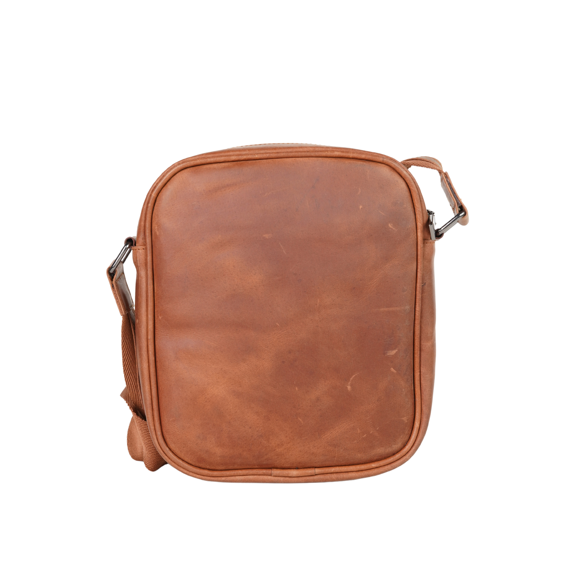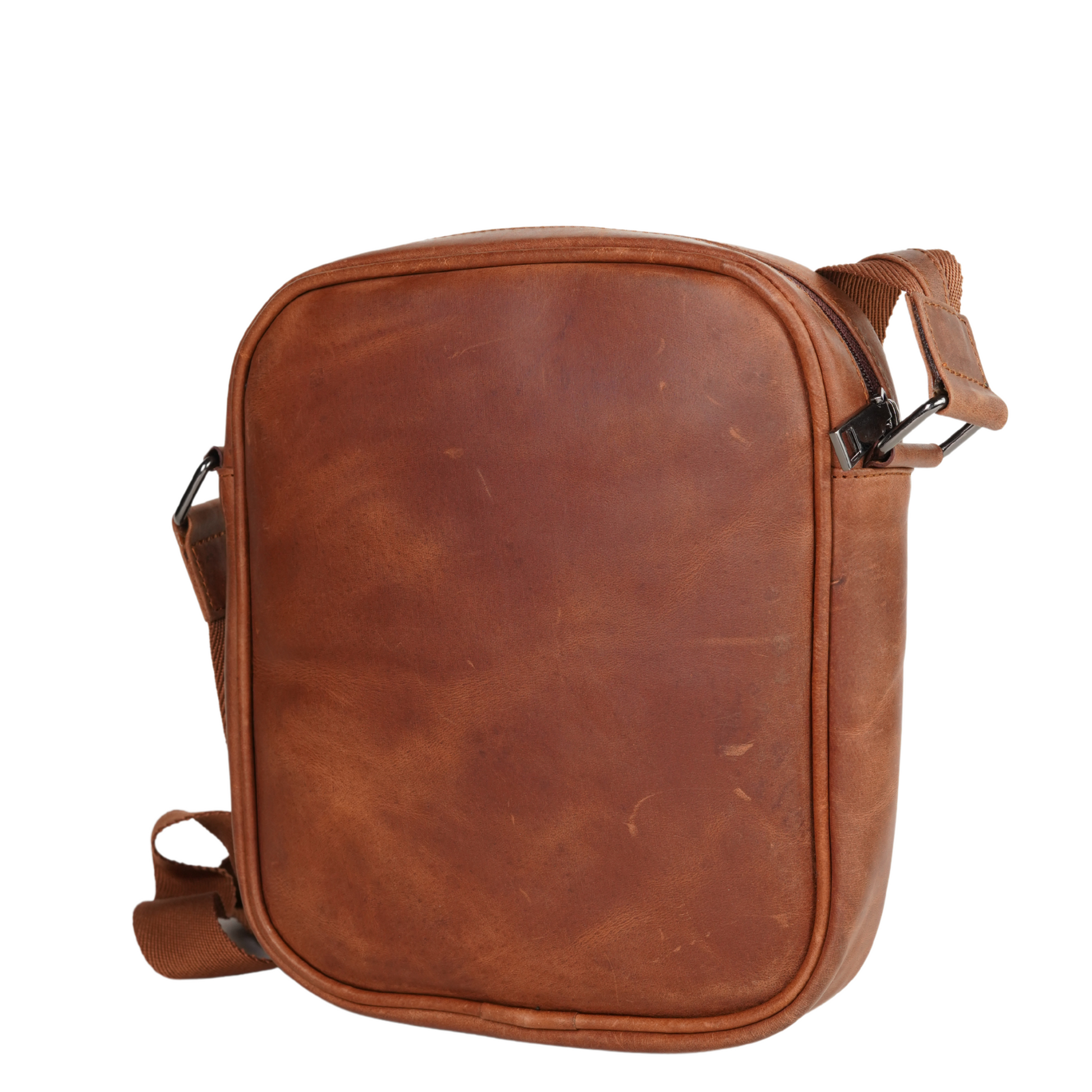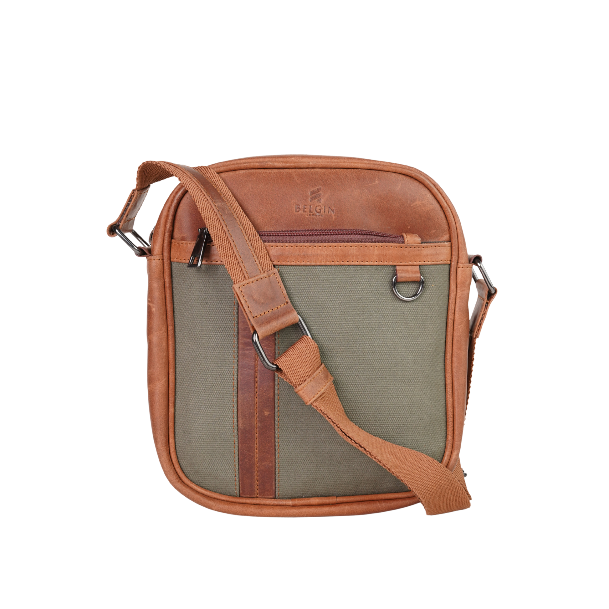 A masterpiece in tan premium full grain leather with olive-washed canvas.
