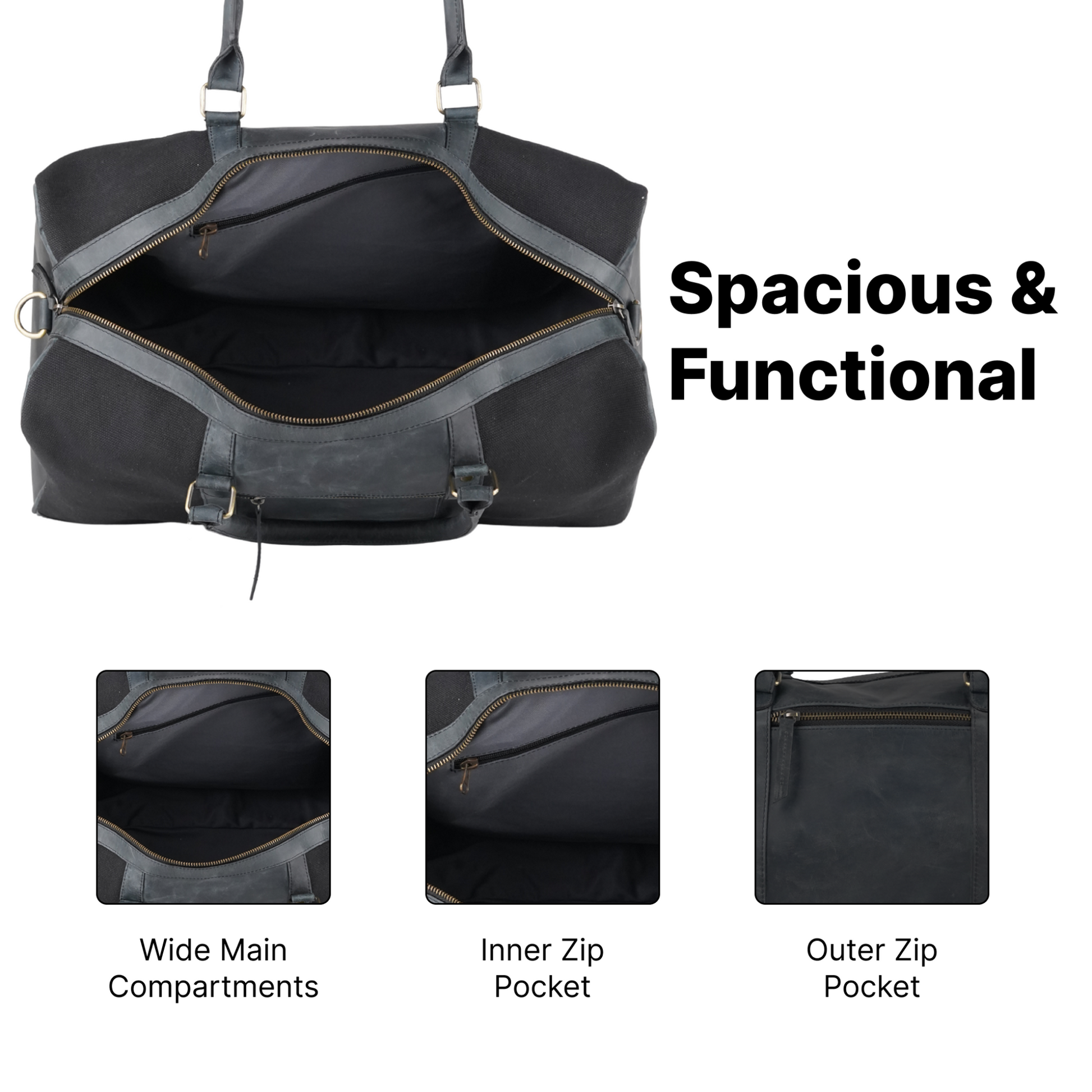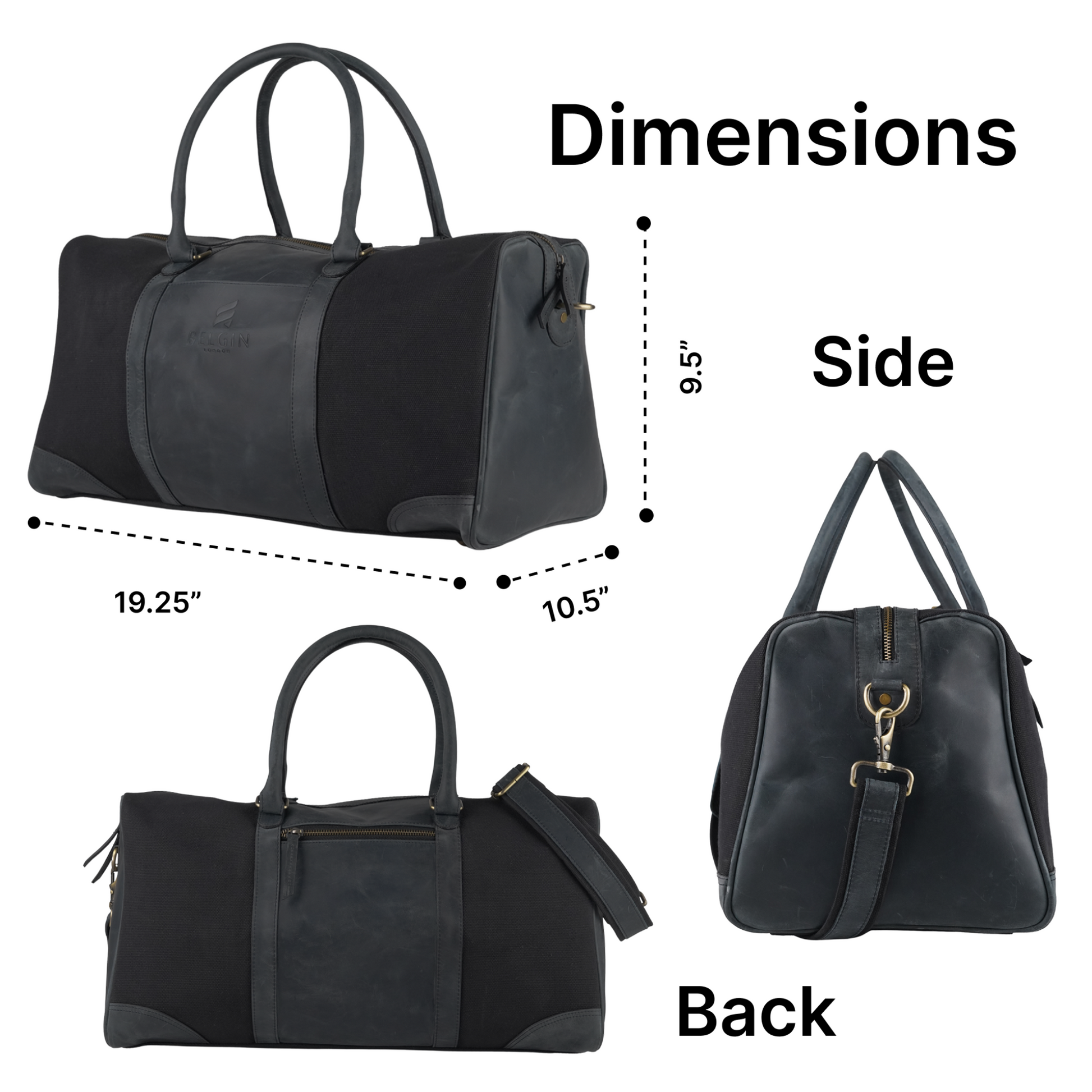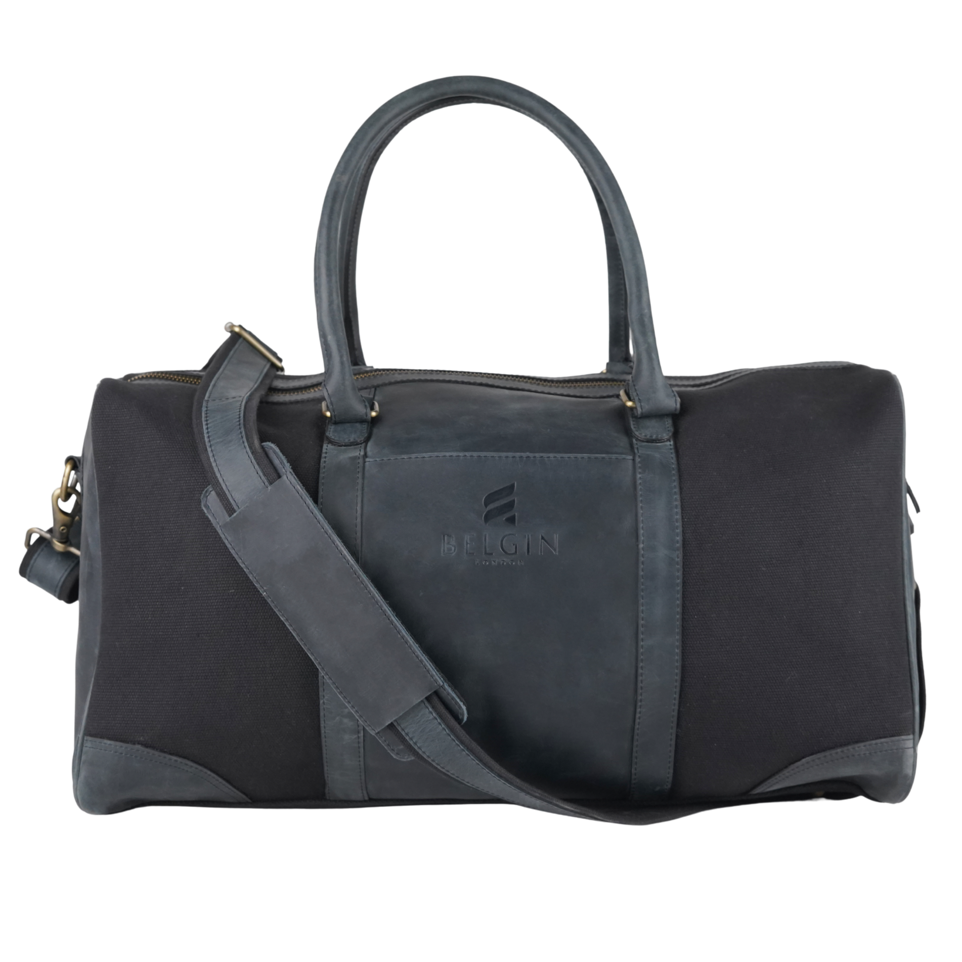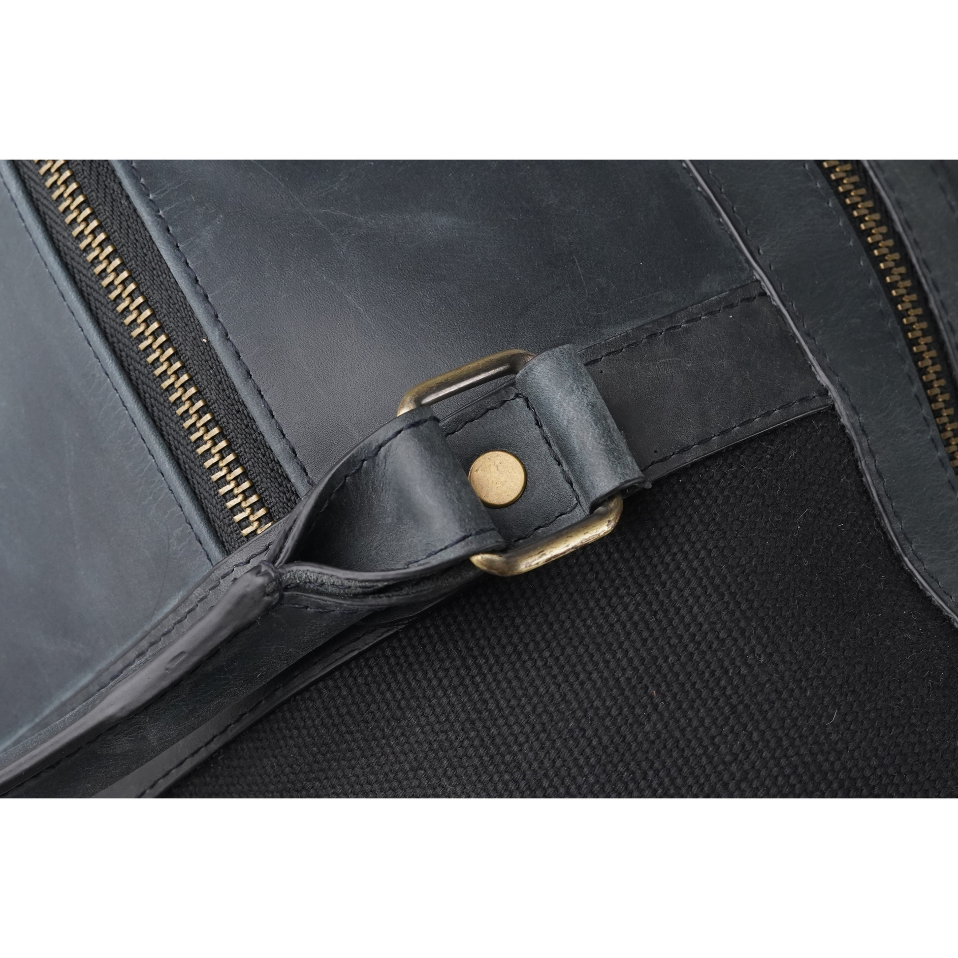 - Excellent Quality black leather on black washed canvas