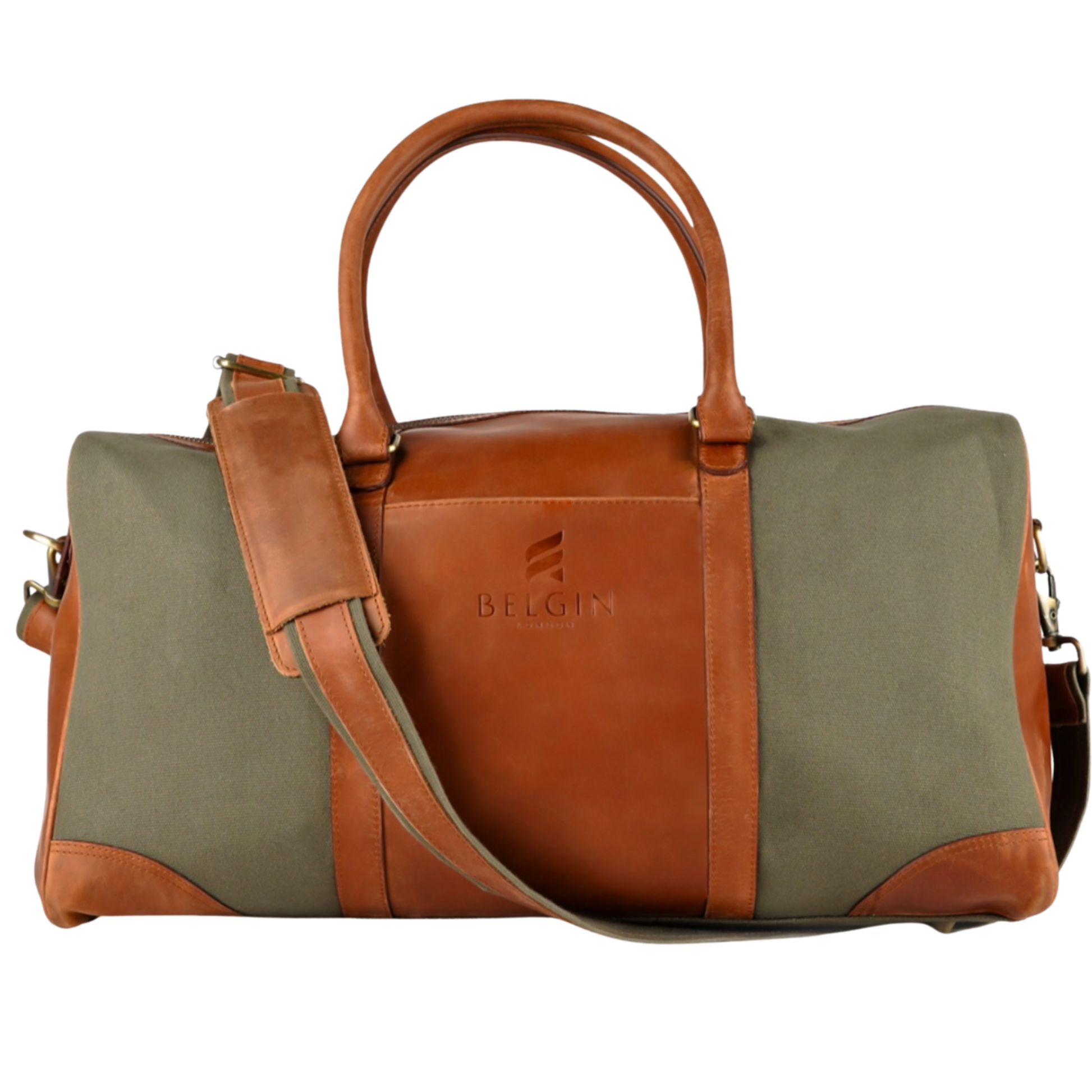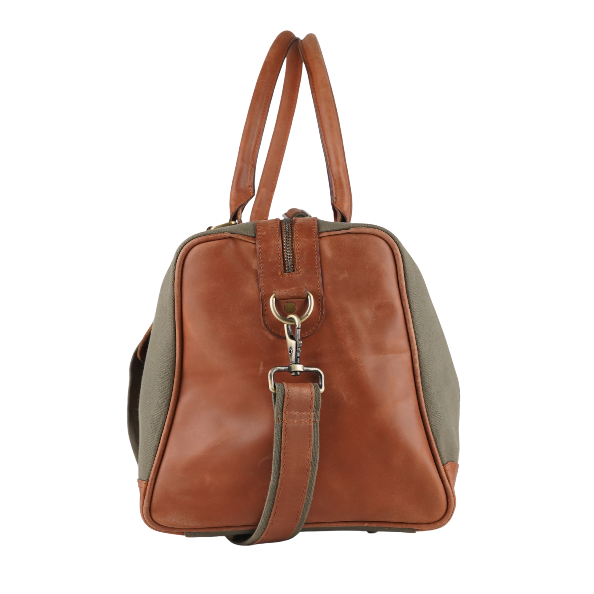 - Excellent Quality brown leather on olive green washed canvas.